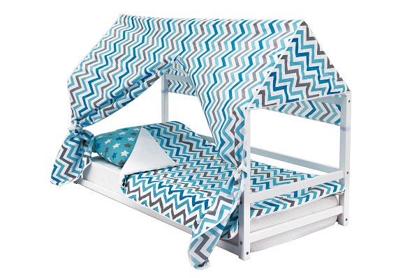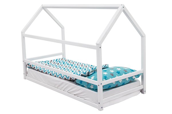 Отличительная черта данных кроватей – отсутствие ортопедических лат (основание кровати). Кровать-домик Монтессори устанавливают непосредственно на пол и кладут матрас.
