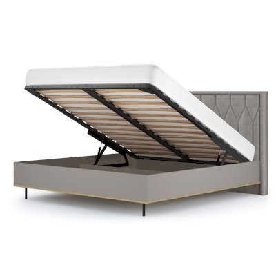 • Наличие подъёмного механизма и короба для хранения позволит рационально использовать пространство вашей спальни и сэкономить на покупке дополнительной мебели.