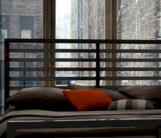 Благодаря отсутствию сплошного полотна изголовья и основания и его замены на горизонтальные перекладины модель выглядит изящно и совершенно не громоздко, благодаря чему может гармонично дополнить любой интерьер в современной стилистике.