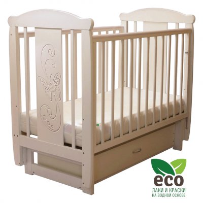 Кроватка "Соня 04" имеет механизм качания поперечный маятник. Механизм качания фиксируется. Возможен вариант с ящиком.