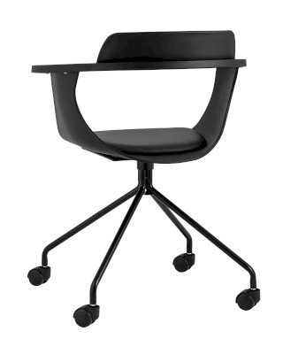 Лаконичное компьютерное кресло Doulton в современном стиле. Эта уникальная модель будет прекрасно смотреться как в высокотехнологичной обстановке хай-тек, так и в помещении, оформленном в скандинавском стиле. Спинка и подлокотники изготовлены из прочного PP-пластика, подушка на сиденье – из экокожи в черном цвете. Крестовина выполнена из металла, окрашенного порошковой краской в черном оттенке. Кресло оборудовано колесиками для более удобного пользования. Высота сиденья не регулируется. Максимальная нагрузка до 150 кг.