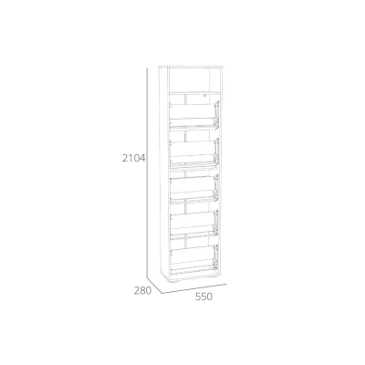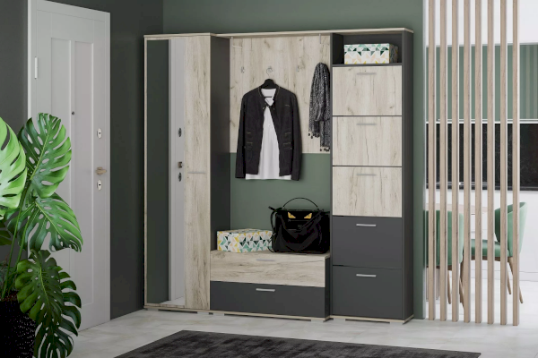 Тумба оснащена пятью ящиками для хранения обуви, которые открываются при их опускании благодаря специальному механизму, а лаконичные ручки серого цвета подчеркивают стиль коллекции. В верхней нише удобно расположить головные уборы или другие необходимые вещи. Дополните тумбу шкафом из одноименной коллекции, чтобы создать особо гармоничную атмосферу.
