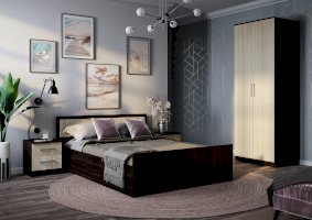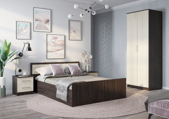 Лаконичная модель двухстворчатого шкафа Фиеста справится с размещением небольшого гардероба. При этом модель содержит достаточно вместительную зону с хромированной штангой для верхней одежды или одежды на вешалках, а также верхнее и нижнее отделение для хранения вещей. Изделие изготовлено из высококачественной ЛДСП в классическом сочетании цветов венге и лоредо.