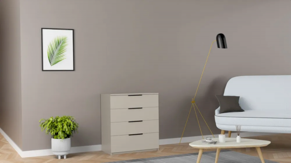 Комод оборудован 4 выдвижными ящиками, которые можно использовать для хранения различных вещей: одежды, нижнего и постельного белья.