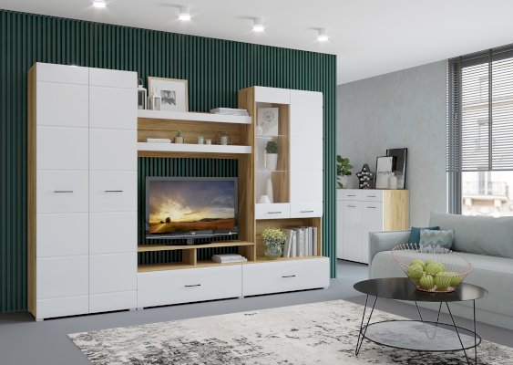 Дуб крафт золотой/Белый глянец
