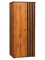 Торцы сверху и снизу покрыты черной пленкой и удачно гармонируют с реечным фасадом. Черные рамки подчеркивают границы шкафа. Внутренние полки и дверцы изнутри также выполнены в черном цвете. Таким образом достигается постоянный контраст, что выглядит очень эффектно!