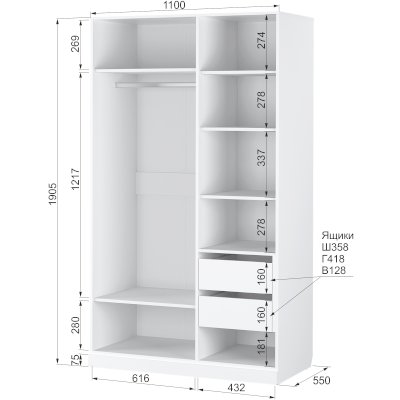 Наполнение шкафа антресоли / выдвижные ящики / штанга