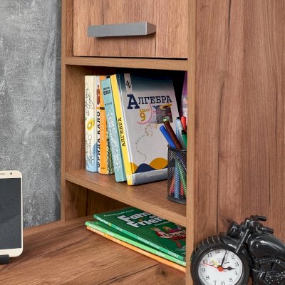 Увеличить площадь рабочего места для Nature 84 Cтол письменный можно используя дополнительный шкаф-надстройку. Шкаф с глухим фасадом и открытыми нишами станет еще одним помощником ребенку для размещения его книг, рабочих тетрадей и письменных принадлежностей. Глухой фасад шкафа перенавешивается как на правую, так и левую сторону.