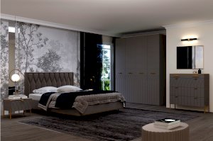 • Надежные материалы – ЛДСП класса эмиссии Е 1 в сочетании с МДФ фасадами. Поверхность фасадов soft touch с фигурной фрезеровкой – один из самых модных трендов в дизайне мебели. Яркие ручки и золотая кромка эффектно подчеркивают стиль мебели.