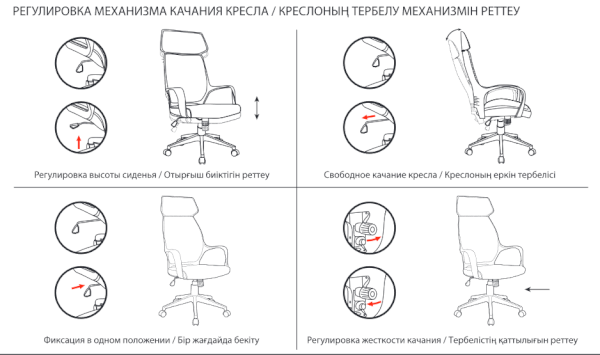Тип механизма кресла: "топ-ган" качание с регулировкой под вес и фиксацией в 1 положении
