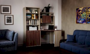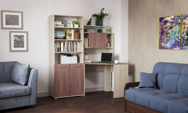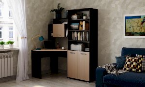 Стеллаж и пенал можно устанавливать как с левой, так и с правой стороны от углового стола, а также использовать как отдельный элемент.