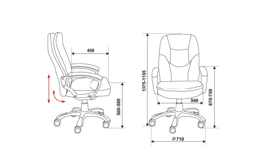 Высота с подлокотниками: 670-750