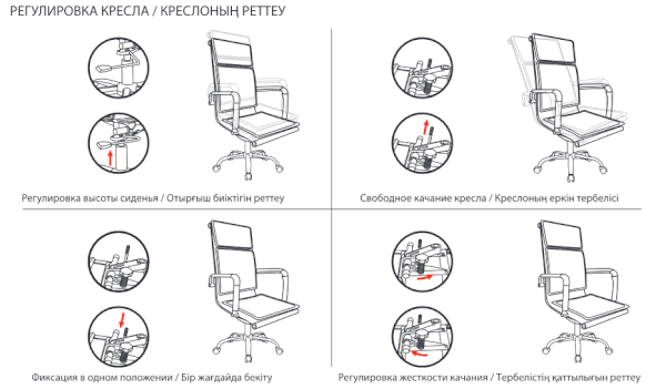 Тип механизма кресла: "Deep Tilt" - механизм глубокого качания с регулировкой под вес и возможностью фиксации в рабочем положении