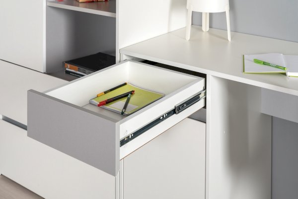 Базовый белый цвет, сочетаясь с акцентным серым, создаёт нейтральную основу для приятного интерьера, чтобы подчеркнуть личные вещи и аксессуары.
