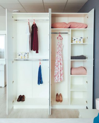 • В левой секции две штанги под короткие вещи и одна жесткая полка.