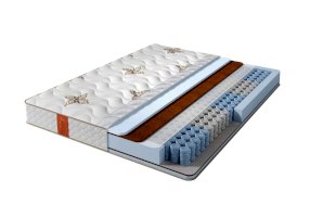 В основе матраса блок независимых пружин Pocket 5 Zone, имеющий 5 зон различной степени упругости, плотностью 512 пружин на спальное место. Благодаря использованию проволоки различного диаметра каждая из зон обеспечивает правильную поддержку позвоночника и правильное распределение нагрузки. Кокосовая койра в комбинации с высокоэластичной пеной Foam обеспечивают среднюю жесткость матраса с обоих сторон.Чехол выполнен из приятного турецкого трикотажа с вискозой в составе, простеганного на объемном гипоаллергенном синтепоне.