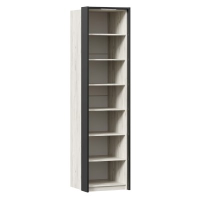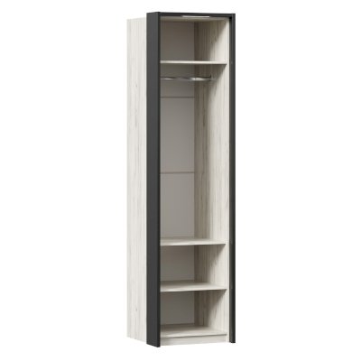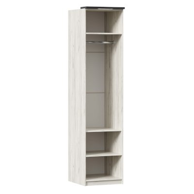 • За распашной глухой сборной дверью 6 полок и штанга для одежды. Высота между полками 300 мм.