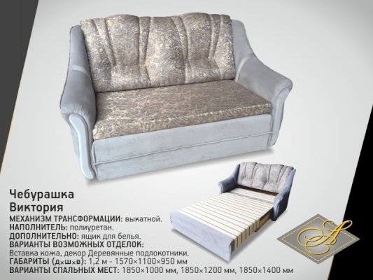 Диван Чебурашка Виктория 1,2 (Асм) - за 29 737 руб. в Макеевке. Купите на сайте makeevka.onlinemarketmebeli.ru или по телефону 8(800)505-30-63 уже сегодня! Уточнить наличие, комплектацию, актуальную цену можно бесплатно у менеджера ежедневно. Закажите Диван Чебурашка Виктория 1,2 (Асм) до конца акции! Доступна покупка в кредит, рассрочку. Доставим со склада или на заказ.