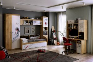 Дополнительное удобное спальное место или большой выдвижной ящик для хранения постельного белья и игрушек, на выбор, решать вам. Стильный принтерный рисунок на фасаде, и карманах. Чехлы подушек съемные, что позволит обеспечить чистоту и порядок. Детская «Энерджи» - это стильная, современная детская, которая понравится каждому ребенку. Рисунок устойчив к истиранию и ультрафиолету.