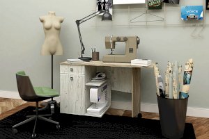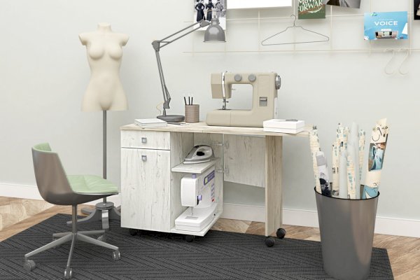 Можно использовать как обычный столик. Есть колесики – поэтому удобно перевозить. Есть ящик и полка со створкой.