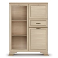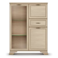 Стеклодверь дает возможность любоваться красотой наполнения шкафа, а система ящиков и отделений с дверками поможет хранить в закрытом любые предметы.