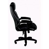 Кресло для руководителя Статус Ultra с обивкой из экокожи. Подлокотники и крестовина выполнены из пластика, на подлокотниках мягкие накладки из искусственной кожи. Все элементы кресла выполнены в черном цвете. Кресло оборудовано механизмом качания Top Gun с возможностью фиксации в рабочем