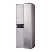 Красивый шкаф Кимберли – прекрасный выбор для хранения вашей одежды. Модель является частью одноименной модульной коллекции, его всегда можно дополнить другими предметами мебели в едином стиле. Изделие состоит из двух распашных дверок, одна из них является полностью зеркальной, а другая украшена декоративным фацетом и гравировкой. Внутреннее наполнение состоит из отделения со штангой для вешалок и двух больших полок для одежды или обуви.