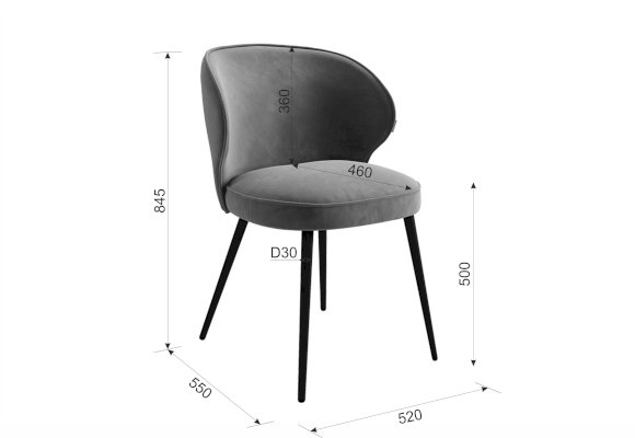 «Гудвин» – мягкий, с обтекаемыми формами, очень уютный и компактный стул, легко впишется в любой интерьер. Он прекрасно подойдет на кухню, столовую зону, рабочий кабинет, стульчик для трюмо или рабочего места ребенка. Анатомически правильная спинка  очень комфортно при посадке. Приятный на ощупь велюр, стильный кант по периметру стула подчеркивают плавные формы стула.