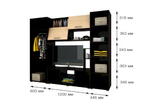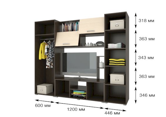 Функционал хранение посуды / хранение одежды / зона для ТВ