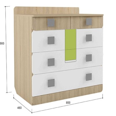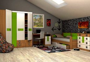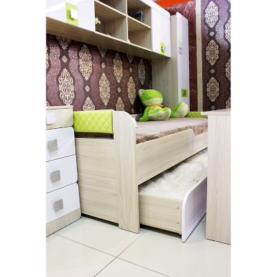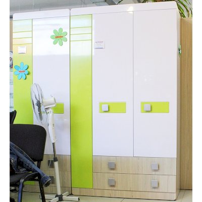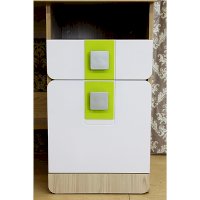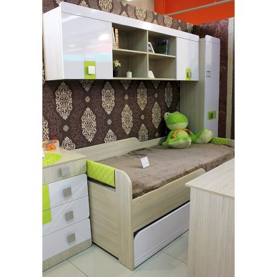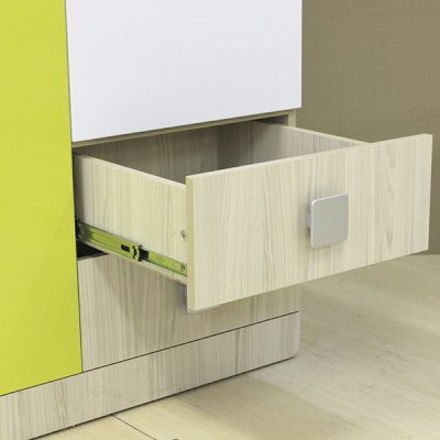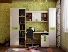 Мебель для детей «Стиль», выполненная в цвете «Лайм» подойдет как для младших, так и для старших школьников. Корпуса детской «Стиль» выполнены из ЛДСП толщиной 16 и 22 мм. Торцы обработаны кромкой ПВХ. Фасады выполнены из плиты МДФ, покрытых глянцевой пленкой белого цвета. Декоративные элементы на фасадах выполнены из МДФ с глянцевой пленкой ПВХ, по периметру подчеркнуты фрезеровкой. Все петли на фасадах с доводчиками. Направляющие на выкатных ящиках - шариковые, полного выдвижения. Мякгие элементы, скругленные углы, пластиковые ручки - все служит безопасности ребенка и придаёт эстетичный внешний вид.