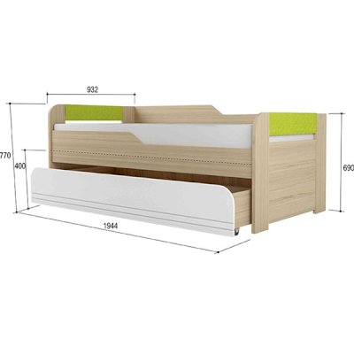 ШхГхВ 2044 х 952 х 770 мм - спальное место: 900х2000 мм