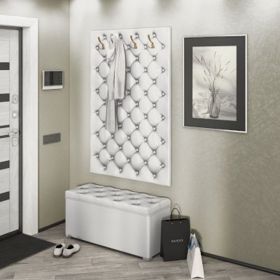 Пуф Мишель шириной с каретной стяжкой. Сиденье пуфа открывается. Под сиденьем большая и удобная ниша для хранения.
