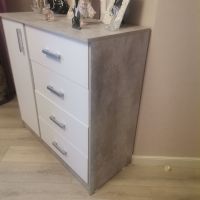 Выбирали комод по фото. Даже не ожидали, что комод окажется настолько качественным и красивым! Все детали без дефектов и сколов, что очень порадовало! Достаточно крепкая фурнитура, крепкие салазки. Приятно, что продавец очень внимательный и положил даже наклейки для того, чтобы закрыть место крепления! Однозначно рекомендую к покупке! Теперь хотим угловой шкаф и тумбу из этой же серии мебели, чтобы собрать комплект.