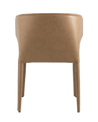 Обивка стула выполнена из прочной износостойкой экокожи. Такой материал не боится влаги, прост в уходе и быстро восстанавливает первоначальную форму. Ножки изготовлены из металла, которые дополнительно обиты экокожей. Закругленная эргономичная спинка с выступающими по бокам элементами обеспечивает максимальный комфорт. На ножках предусмотрены специальные подпятники, которые предотвращают скольжение и не царапают напольное покрытие.