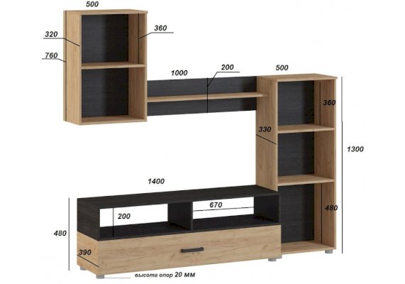 Ниша под ТВ: 140 х 62 см