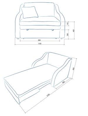 Габариты в разложенном виде: 1100х2100х800 мм