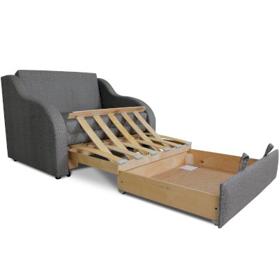 Детский диван Юниор 1.1 - это компактная модель для ребенка. На нем можно не только сидеть, но и спать благодаря наличию выкатного механизма трансформации. На диване спокойно поместится и школьник, и подросток. Достаточно потянуть за петлю под сиденьем спереди и конструкция разложится вперед.