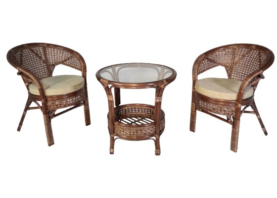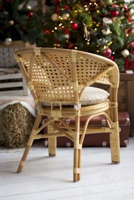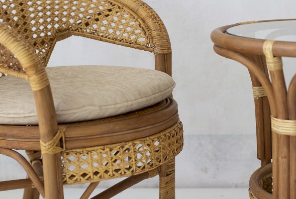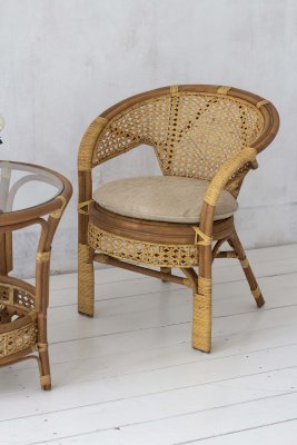 Кресло из натурального ротанга с подушкой и плетеной спинкой Пеланги.