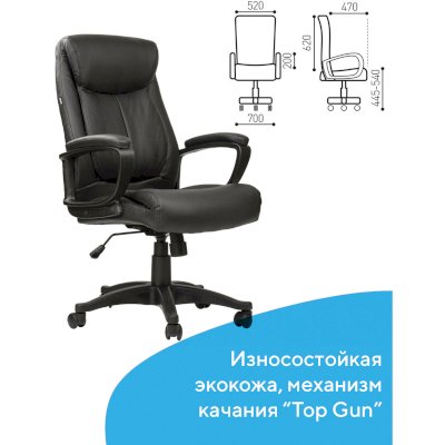 Надежный механизм качания "Top Gun" обеспечивает хорошую поддержку спины и поясницы за счет возможности свободного качания с фиксацией в одном рабочем положении и регулировку угла наклона под вес сидящего.