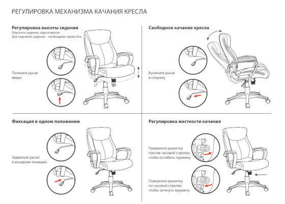 Тип механизма кресла: "топ-ган" качание с регулировкой под вес и фиксацией в 1 положении