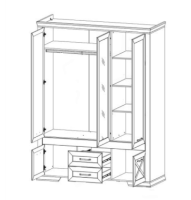 Два отделения с распашными дверцами оборудованы штангой под вывеску одежды.
