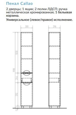 Пенал Callao с бельевой корзиной (Виго) - за 14 839 руб. в Макеевке. Купите на сайте makeevka.onlinemarketmebeli.ru или по телефону 8(800)505-30-63 уже сегодня! Уточнить наличие, комплектацию, актуальную цену можно бесплатно у менеджера ежедневно. Закажите Пенал Callao с бельевой корзиной (Виго) до конца акции! Доступна покупка в кредит, рассрочку. Доставим со склада или на заказ.