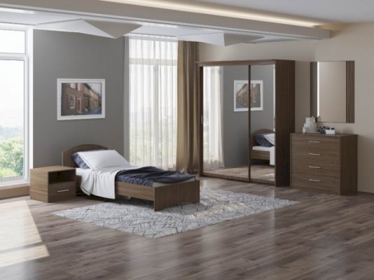 Кровать из ламинированного ДСП и комбинированной кромки: ПВХ, ПВЦ, меламин, — в комплекте с ортопедической решеткой.