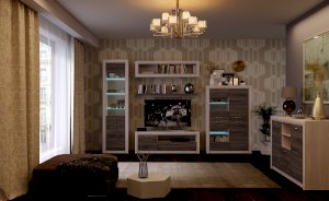 Модульная гостиная Октава Ясень Анкор/Дуб Клабхаус серый (Памир)