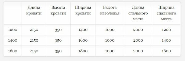 Кровать доступна в 3-х размерах: 1200, 1400 и 1600 мм.