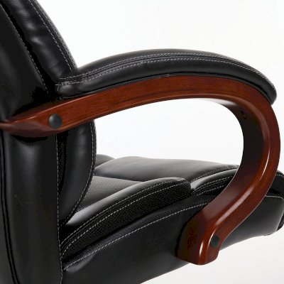 Удобное, стильное кресло с деревянными элементами и обивкой из высококачественной рециклированной кожи с расширенной гарантией 24 месяца. Качественное, надежное кресло премиального сегмента.
