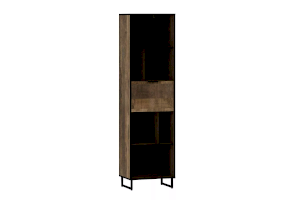 Стеллаж из коллекции ФОЛК легко впишется в интерьер гостиной в стиле Лофт, придав ей современный и монументальный вид. Черная лаконичная ручка и металлические опоры подчеркивают оригинальный дизайн мебели, а черная кромка эффектно выделяет фасад изделия.