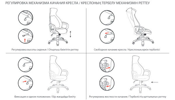 Тип механизма кресла: "топ-ган" качание с регулировкой под вес и фиксацией в 1 положении