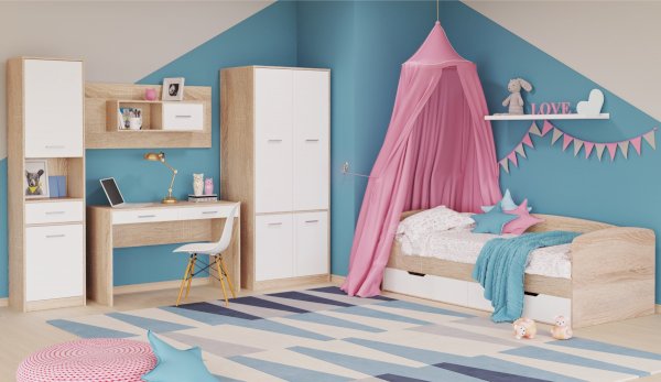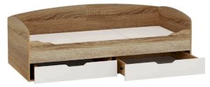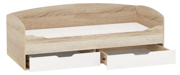 Топчан в скандинавском стиле со скругленным изголовьем и высокой спинкой имеет два больших ящика, с помощью множества роликов его легко выдвинуть. Для безопасности и удобства открывания выдвижной ящик вместо ручек оснащен выемками на лицевой части фасада. Высокая спинка в топчане предохраняет от соприкосновения с холодной стеной во время сна. Пользоваться кроватью может взрослый и ребенок любого возраста, так как она имеет размеры стандартной кровати 90х200см, устойчивую конструкцию и нейтральный для интерьера цвет. Идеально компонуется со всеми модулями системы Стелс. Мебель выполнена из высококачественных экологичных материалов.