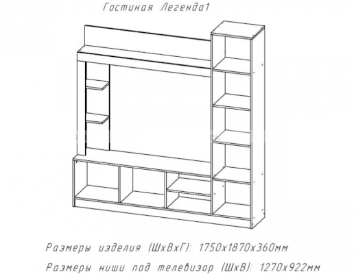 Ниша под ТВ (ШхВ): 1110х920 мм